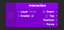 常用的 Interaction Patch,能够监测对图层的点击事件,输出Down和Tap两个逻辑状态。